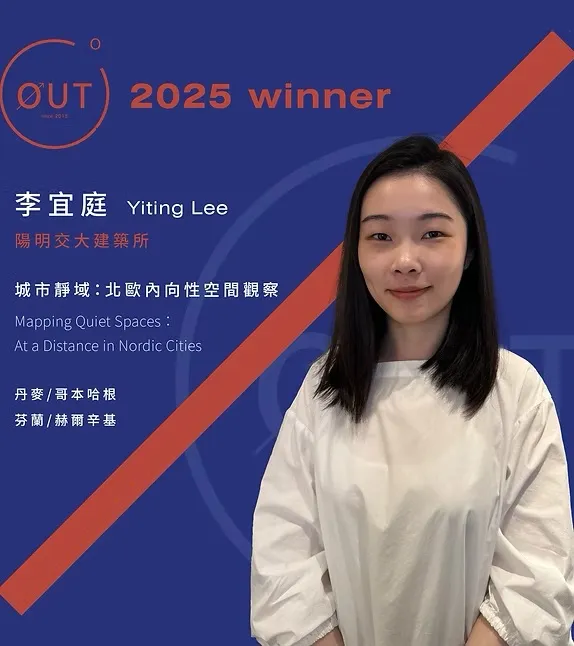 本所李宜庭同學以「Mapping Quiet Spaces: At a Distance in Nordic Cities(城市靜域:北歐內向性空間觀察)」提案角逐,獲得2025年OUT 獎學金,獲得評審評價「觀察細膩的計畫,從北歐切入內向空間與心理韌性,反映對邊界、文化距離與空間留白的深度關注。」